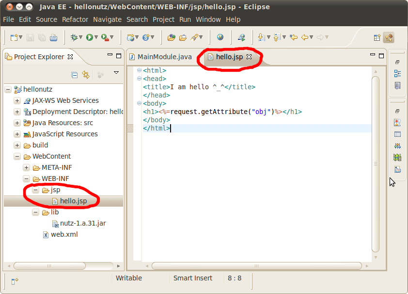 下面是 hello.jsp 的源代码: